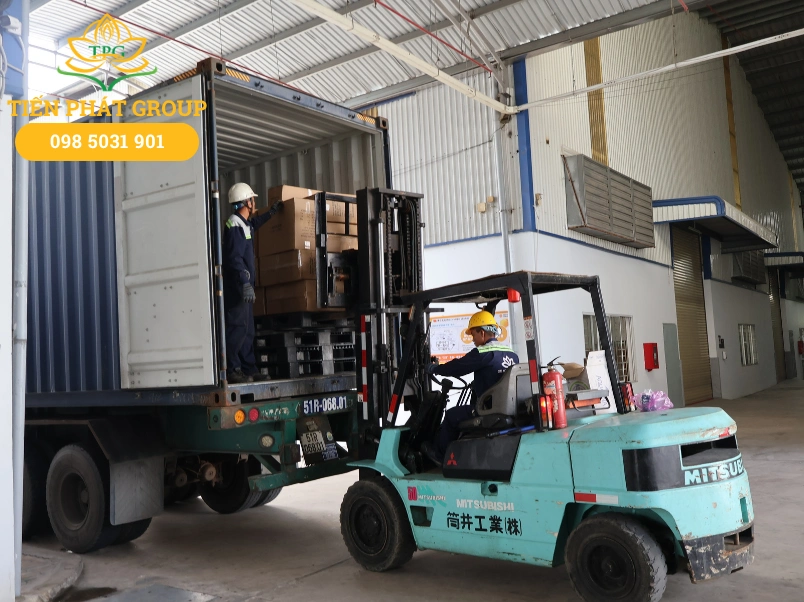 - Rút container & Đóng hàng: Sử dụng xe nâng dầu/điện bốc dỡ nguyên liệu dệt may, linh kiện điện tử và hàng đóng kiện xuất khẩu chuyên nghiệp.