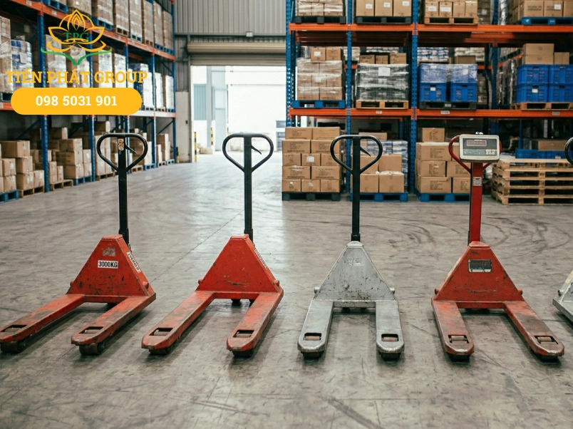 - Kho nặng: xe nâng tay thấp 3 tấn hoặc 5 tấn.