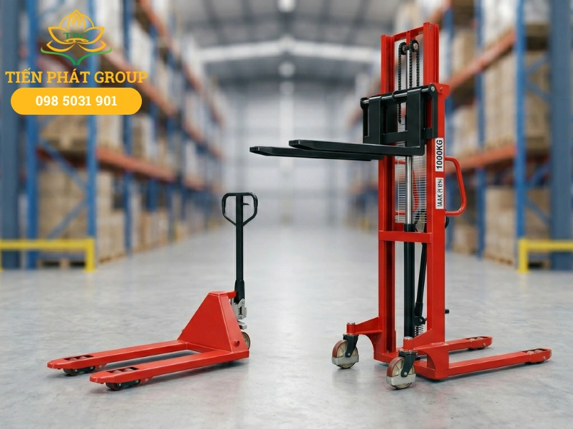 | Mục đích chính | Kéo và di chuyển pallet hàng hóa trên mặt phẳng ngang. | Nâng hàng hóa lên các kệ kho rack hoặc thùng xe tải. |